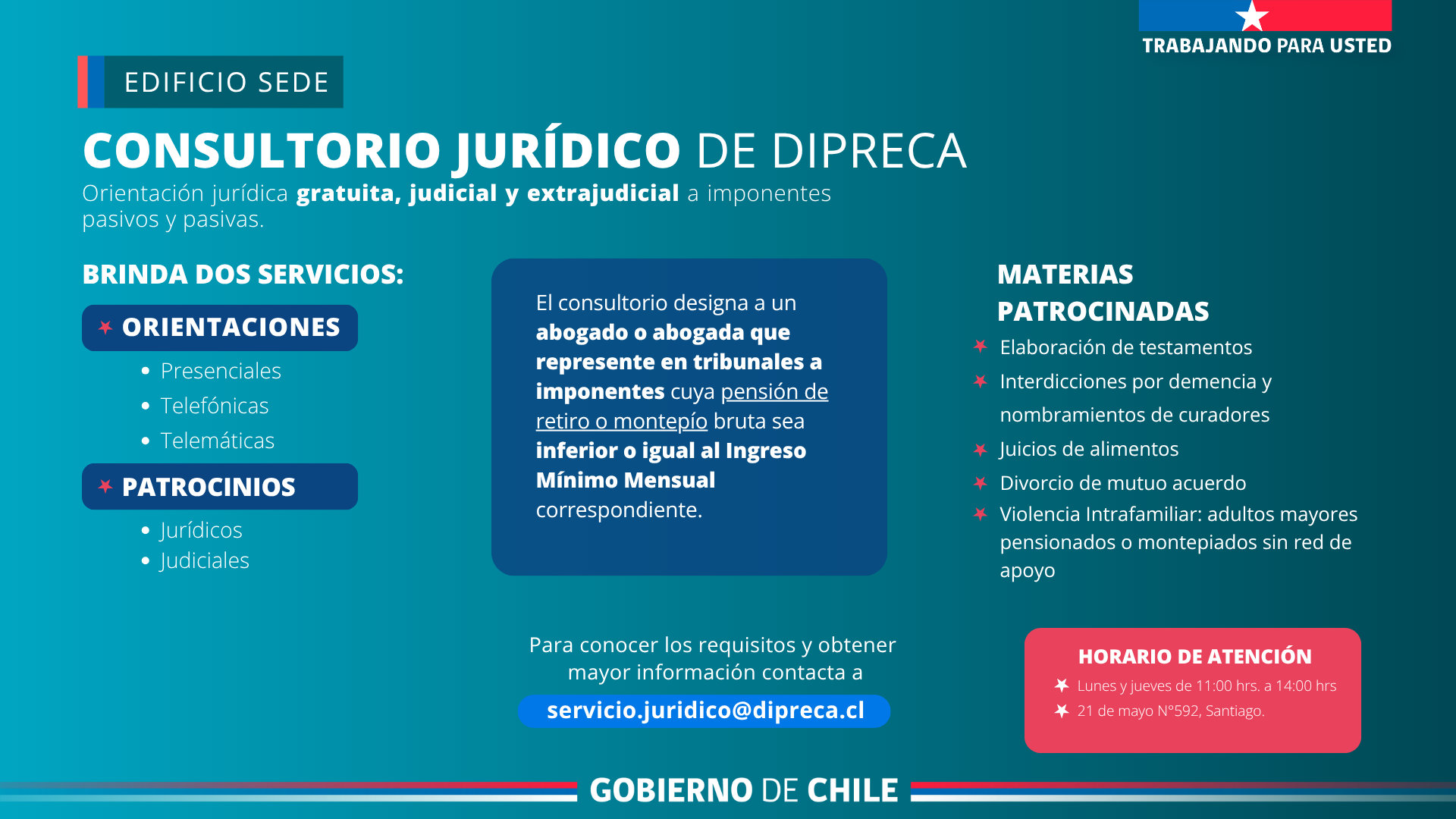 En Edificio Sede: acceda al Consultorio Jurídico de DIPRECA